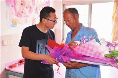 日前,育黎镇政府工作人员将一束鲜花送到南李家村村民李乃才的手中,赞扬他拾金不昧的高尚品格。