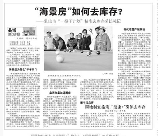 今年全市经济工作会议提出,要坚决完成“去产能、去库存、去杠杆、降成本、补短板”五大任务。其实,从六年前,乳山就先行一步,开启“去库存”探索之路——叫停传统意义的海景房开发,避免增加新库存,通过转型发展健康产业消耗存量房产,着力解决房产空置率高的问题。