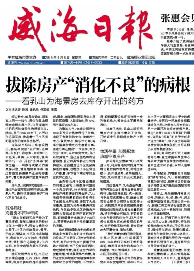 6日和7日,威海市最权威的党报《威海日报》和山东省最权威的党报《大众日报》分别以头版头条和深道报道的形式,集中关注威海乳山海景房,多家网络媒体随后也进行了大量的转发。