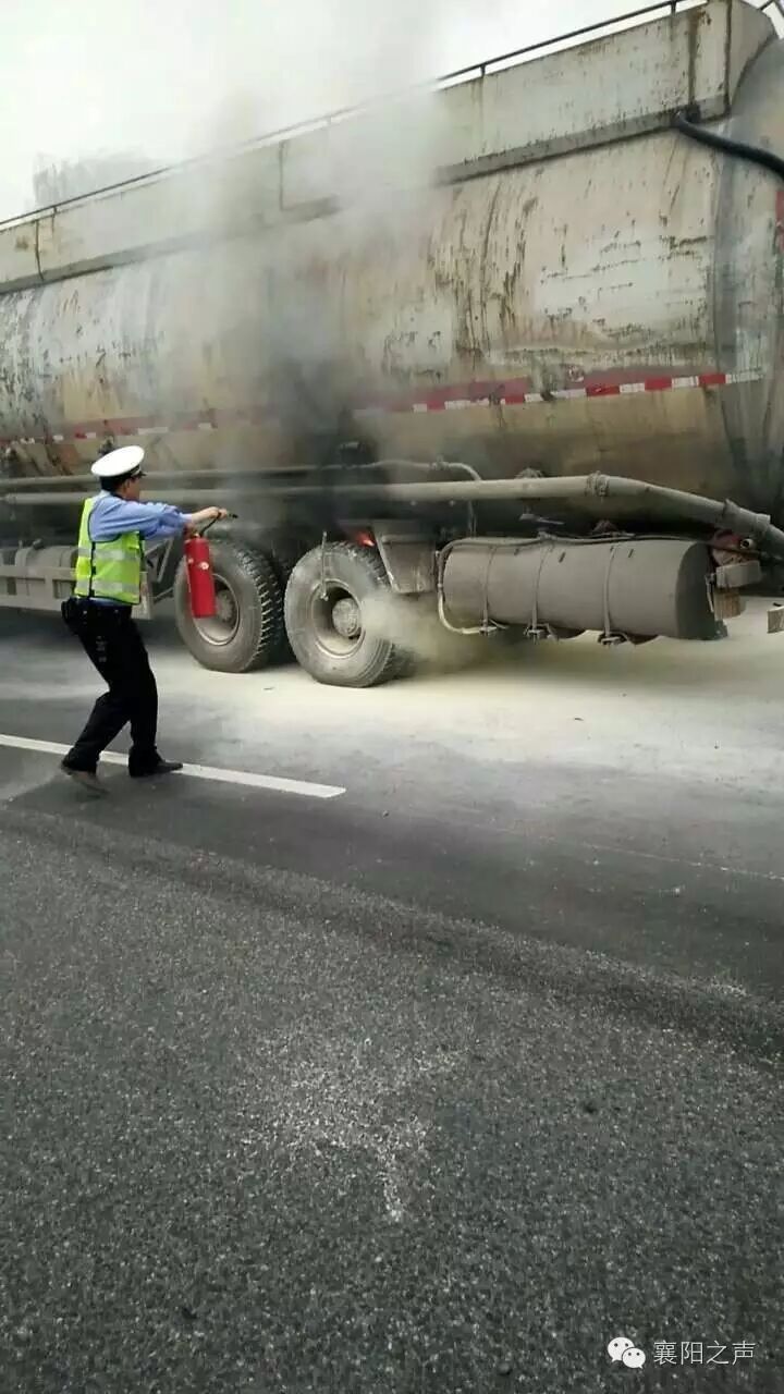 10月3号早上,襄西高速路口发生惊险一幕,一辆大罐车轮胎突然冒烟,如果车辆着火引发罐体爆炸,后果不堪设想。危急时刻,正在路口执勤的民警冲了上去。